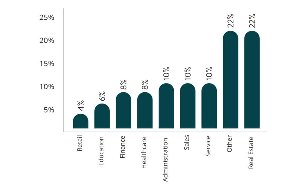 - Diverse Professional Backgrounds: Many students enter real estate from unrelated fields, with top backgrounds including the service industry, sales, and administrative roles.