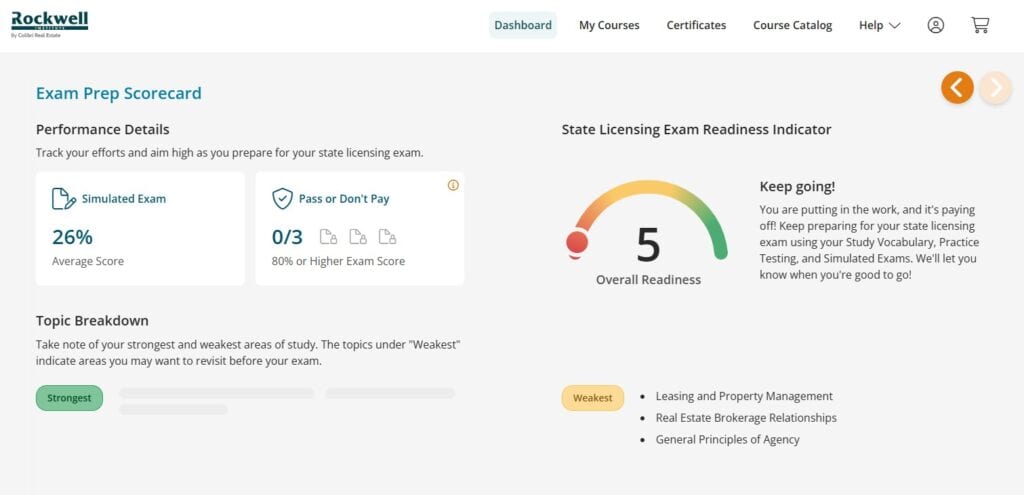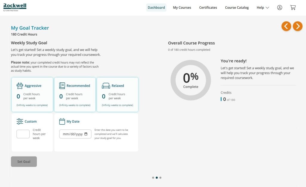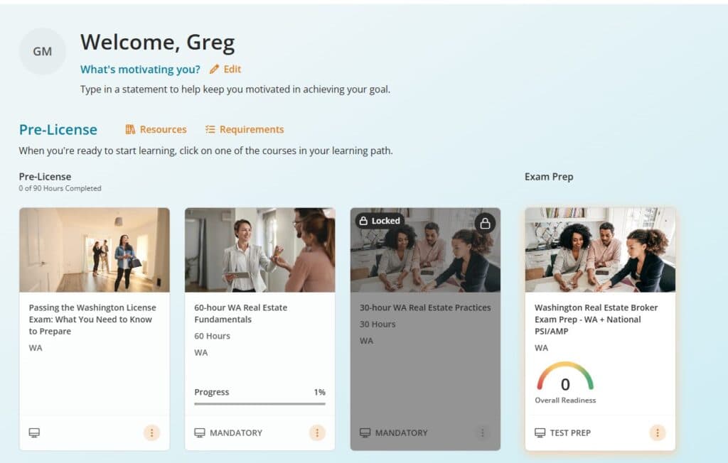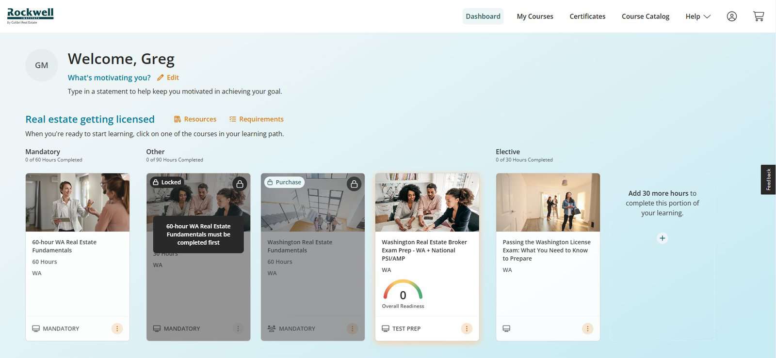 Our next-generation student dashboard will make your learning journey easier and more enjoyable. Complete with new features and a fresh, modern design based on the latest innovation of outcomes-based curricula, Dashboard 2.0 features innovative tools that cater to your unique learning preferences and career goals. This user-friendly platform, paired with Rockwell’s expert instructors and fifty plus years of success in teaching Washington brokers, transforms your experience into a seamless and engaging journey, helping you stay ahead of your courses with ease.
