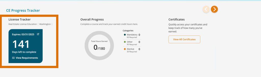 We’ve launched our new, ARELLO® award-winning student dashboard, tailored specifically for our students. Our upgraded student dashboard simplifies your education journey from your first course through exam day and will be available for all students, whether pursuing your license, or taking your continuing education. Easily access customized course materials, monitor your progress, and stay organized as you complete your educational milestones and gear up for your licensing exam. With everything you need in one place, you can focus on successfully completing your courses.